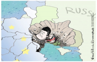 Конкретно, уже на местности, начата подготовка свержения Порошенко: "Правый сектор" объявил о создании в регионах Бандерии пунктов (и ревкомов!) по проведению референдума для сноса режима "мирным путём", а президент занят утверждением новой формы для армии... Его обкладывают со всех сторон, как Януковича, уже и "Батькивщина" Тимошенко и радикальный Ляшко подключились к травле президента, а он "полицейскую академию" созидает, очередной повод для зубоскальства...