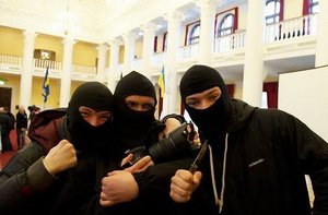 Новости по теме: Машины из автопарка Януковича нашли у сотника 11 сотни Майдана Кстати, вчера отряд людей в масках напал на Киво-Святошинскую прокуратуру города Киева. В помещение прокуратуры ворвались около 30 человек в масках и камуфляжной форме. Неизвестные были вооружены металлическими палками и бейсбольными битами. Не долго думая, они схватили одного из сотрудников прокуратуры и избили его, требуя убраться из Киева. Кто были эти люди, была ли это очередная провокация или действия какой-то из правых групп – доселе неизвестно. Но, так или иначе, но конфликты в центре Киева происходят постоянно. Неудивительно – ведь в центре города не первый месяц находится настоящая вольница, организованная по принципу Запорожской Сечи и насчитывающая тысячи вооруженных и закаленных в боях мужчин. И очевидно, что пока не станет лучше (т.е. не станет так, как они посчитают лучшим) – они не разойдутся. А это означает, что нас ждет еще много тревожных вестей с Крещатика. Главное, чтобы больше никто не пострадал. Валерий Титарук