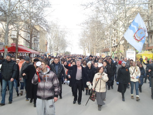 Более тысячи человек прошли маршем по улице Советской, призывая жителей Николаева гнать оккупантов со своей земли, как это делали наши отцы и деды.