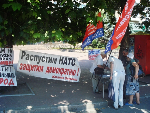 При въезде в Николаев, вблизи Ингульского моста, в центре города на улице Советской, на центральной площади Ленина выставляют свои пикеты активисты ПСПУ.