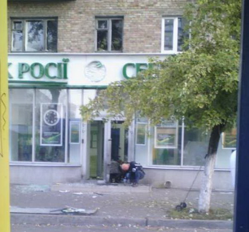 Этой ночью в Киеве неизвестные разгромили отделение «Сбербанка России».