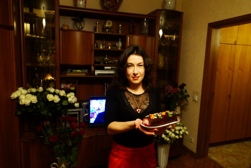 Новогодний стол я накрывала у себя в квартире. В моей 2-х комнатной квартире на Оболони всегда всем хватает места. Готовлю много вкусностей. Центральными моими блюдами был карп в маринаде, салат «Ананас» и торт «Обезьянка». Да и младшая дочь-умелица сделала вкуснейший салат-рулет типа шубы и новогодний торт. Встречала Новый год с дочерьми, старшим внуком и падчерицей. А через час после наступления 2016-го ещё ко мне настоящий маленький новый год приехал в виде 6-летнего Игната – это сын моего племянника, они примчались нас поздравить. Смотрели роскошные новогодние российские концерты, танцевали, гадали.