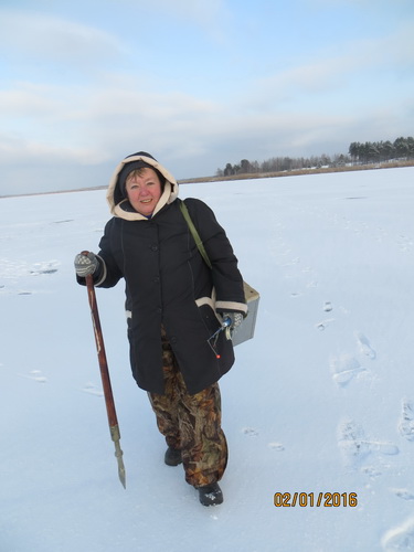 Потом ещё на рыбалку (тоже на Киевское море, но с другой стороны дамбы) ездили 5 января. Хоть у меня не клевало, но Владимир Романович 7 окуней поймал. Я к ним добавила голову и хвост новогоднего карпа и такую уху сварила, пальчики оближешь!