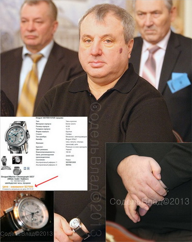 Содель уточнил, что на руке у Овчаренко оказались часы Marine Chronograph 5827bb/12/9z8 – их стоимость у производителя составляет 32400 долларов, однако на рынке их можно найти за 27 тыс у.е.