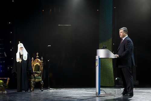 «Ваше Святейшество! Высокопреосвященные и Преосвященные владыки! Святые отцы, высокодостойные граждане! – обратился крещёный в Православной Церкви Порошенко к отлучённому Церковью же за учинение раскола (греха, по Преданию, не смываемого даже мученической смертью) самозваному «патриарху», его прислужникам и поклонникам. – Сегодня мы отмечаем юбилей, уникальный не только для Украины, не только для вселенского православия. Возможно, даже для христианского мира...»