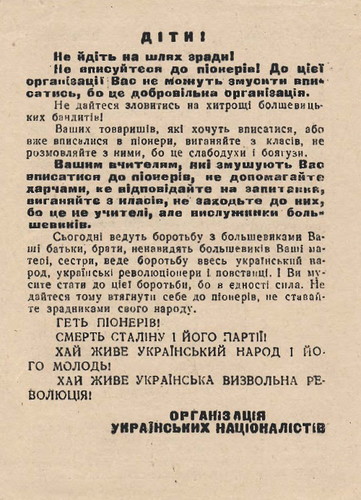 Главной целевой аудиторией украинских националистов всегда были дети и молодежь. Один из основателей ОУН Зиновий Кныш писал в своей книге «Становление ОУН», что ОУН возникла из 2-х составляющих: военных, принудительно одетых в гражданскую одежду (речь про УСС), и молодежи Западной Украины, плененной демоническим словом Донцова.