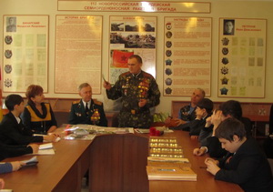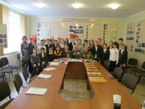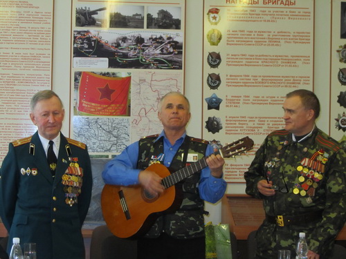 Для почетных гостей ученики дали небольшой концерт. Звучали стихи и песни на афганскую тему.Активисты-витренковцы Рябухин Иван и Пластуненко Алексей в составе дуэта "Привал" исполнили свои песни, рассказали о своей службе и пожелали учащимся крепкого здоровья, успехов в учебе и спорте.В завершении встречи все сфотографировались на память, а гости оставили свои подарки, которые пополнят экспозиции школьного музея Боевой Славы.