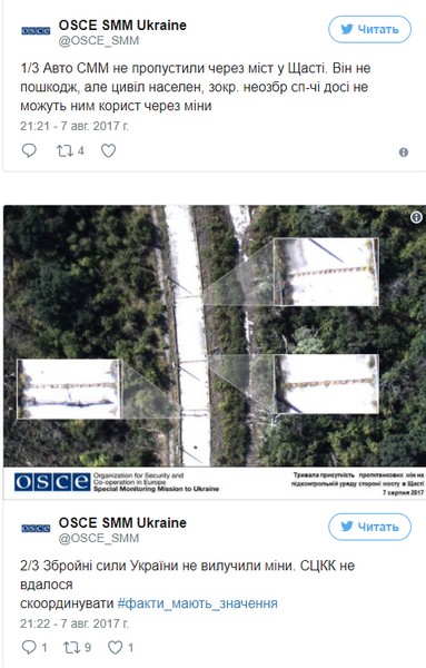"Мосты предназначены объединять людей, а не разъединять их. Извлеките мины немедленно!", – резюмировали в ОБСЕ.