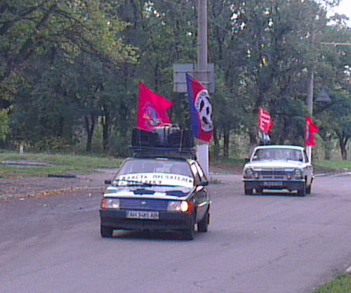 22.09.2013 г. с лозунгами : "Фрекинг - STOP!", "НЕТ- Чернобылю - 2!" ," Власть предателей в отставку", " Мы против ЕС и НАТО" активистами ПСПУ, профсоюзной организации КТУ, общественной женской организации " Дар жизни" был осуществлен автопробег в городе Дзержинске, пос. Кирово, г. Артемово, пос. Новгородское Донецкой области с раздачей листовок в общественных местах города в поддержку акции протеста против добычи сланцевого газа как в Украине так и за рубежом. Нельзя допустить масштабную грозящую трагедию от добычи сланцевого газа " передовыми технологиями" .
