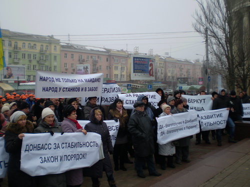 Сегодня, 12 февраля 2014 года, возле памятника Т. Г. Шевченко прошла акция общественного движения "Оборона Донецка", анонсированный как мирная и которая выступает за объединение всех здоровых сил города Донецка.