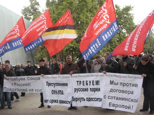 Активисты ФНСЕ требовали от депутатов городского совета принять соответствующее заявление к президенту Украины В.Януковичу и Верховной Раде Украины от Города-героя Одессы, в котором четко выразить позицию одесситов против вступления в ЕС .