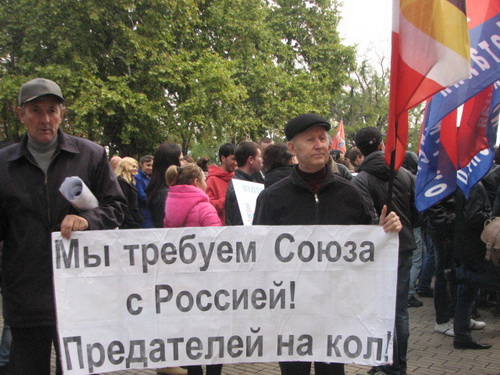 Протестующие назвали евроинтеграторов Украины, в т.ч Партию регионов, президента, Януковича и других украинских лидеров и партий евро- оранжевого толка, предателями народа Украины, евроколонистамии потребовали "предателей на кол!".