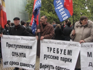 9 октября активисты ПСПУ провели антифашистскую акцию под лозунгом "Преступлениям ОУН-УПА нет срока давности" перед началом сессии Одесского городского совета.