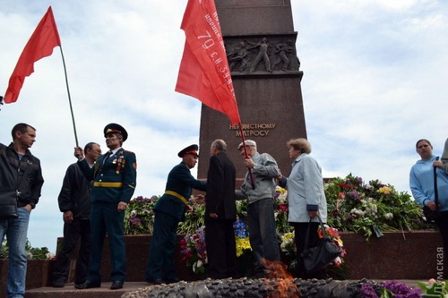 Одесситы громкими аплодисментами встретили Знамя Победы и участников акции "Бессмертный полк". Над Черным морем громко разносилось «Спасибо деду за Победу!» и «Фашизм не пройдет!».