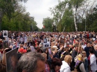 По оценке нашего корреспондента, в акции приняли участие не менее 2000 человек - они с портретами погибших в годы Великой Отечественной войны бойцов проследовали к памятнику Неизвестному матросу и организованно возложили цветы.