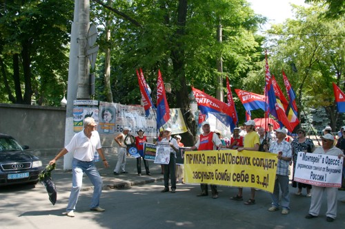 Во время акции одесситы в НАТОвцев бросали антиНАТОвские листовки и скандировали "НАТО НЕТ!", "НАТО в АД!" "НАТО СДОХНИ !".