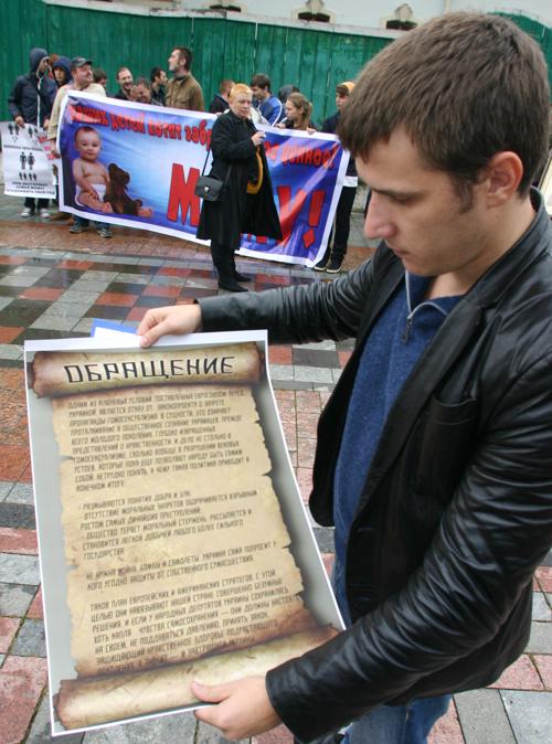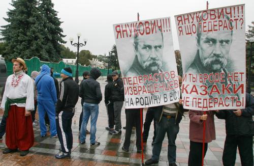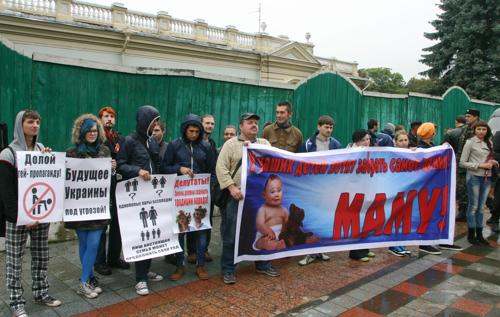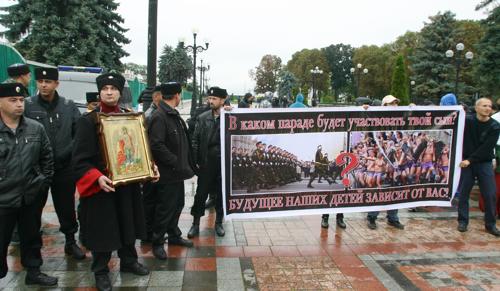 Сегодня в Киеве у стен Верховной Рады состоялся пикет одесситов, (организованный Всеукраинской общественной организацией "Молодёжное единство", Одесской областной общественной организации "Войско верных казаков Черноморских им.Богдана Хмельницкого) и поддерживающх их киевлян против проекта закона N 2342, внесённого премьер–министром Украины Н. Азаровым по требованию Евросоюза. Закон гарантирует извращенцам–педерастам и лесбиянкам равные права с людьми нормальной сексуальной ориентации.