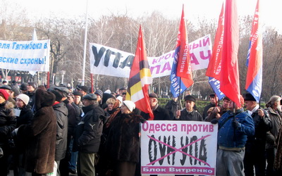 "В знак протеста против таких фашистских действий МИДа Украины наши лидеры - председатель ПСПУ Наталия Витренко и председатель Партии "Киевская Русь" Павел Баулин обратились к президенту Виктору Януковичу с требованием изгнать неонацистов из украинской власти и эту нашу позицию сегодня мы довели до одесситов", - подвел итог Валерий Сергачев.