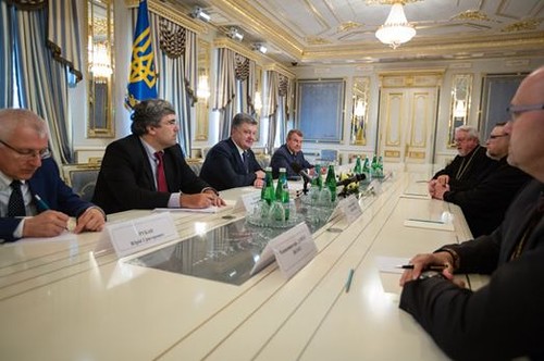 В тот день, 28 июля, после посещения службы у лжепатриарха "УПЦ КП" Порошенко принял делегацию из США и Канады. Интернет-представительство украинского президента особо подчеркнуло, что делегация представляет Константинопольского патриарха. И уточнило позицию Порошенко: "Молитва Вселенского Патриарха и его непоколебимая позиция в защиту мира и единства Украины помогает нам исцелить раны, которые наносятся Украине российской агрессией и террористами". И далее: "Украинский народ молится, чтобы единство пришло и в церковную жизнь, и удалось сделать то, к чему стремятся все украинцы - создание поместной украинской церкви. Для нас это является мечтой, которая поможет Украине быть объединенной и сохранить принципы и традиции".