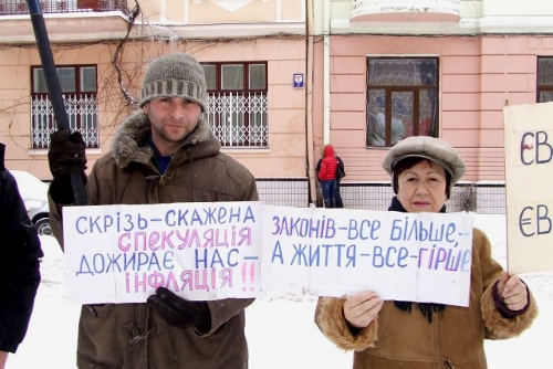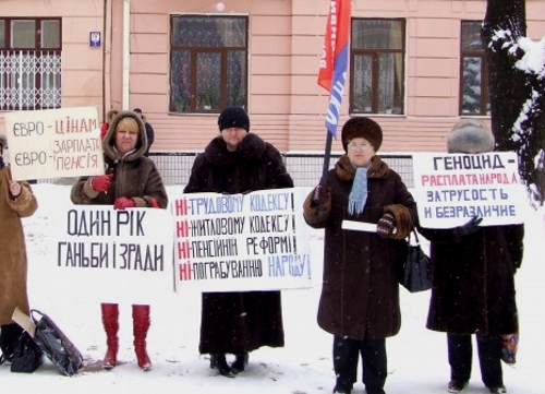 25 февраля Черновицкий областной комитет ПСПУ провел акцию пикетирования Черновицкой облгосадминистрации под названием "Один год позора и предательства". Участники акции вышли под лозунгами "Геноцид – расплата народа за трусость и безразличие", "Владо "не гони порожняк!" виконуй передвиборні обіцянки!", "Евроценам – еврозарплата и пенсия" и другие. В ходе акции участники раздавали листовки.