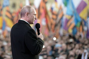 "Мы всегда в России считали, что русские и украинцы - это один народ. Я так думаю и сейчас. Конечно, крайний национализм всегда вреден и опасен. Уверен, что украинский народ даст еще достойную и объективную оценку деятельности тех, кто довел страну до такого состояния, в котором она находится сегодня", - сказал президент в своей речи на митинге-концерте в Москве, посвященном годовщине воссоединения Крыма с РФ.