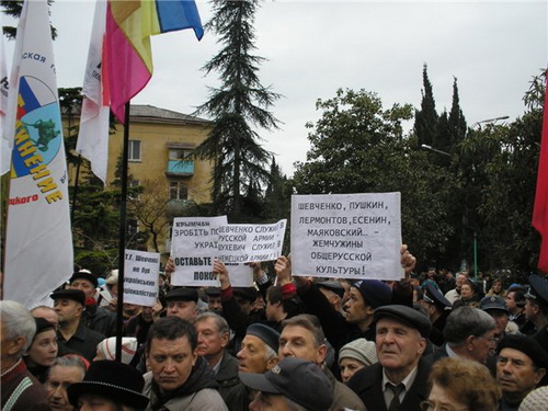 Следует также отметить, что и руководство города частенько отмечалось в националистических шабашах. Так, в своё время мэр Ялты Сергей Брайко принял от представителей заокеанской украинской диаспоры памятник, по их мнению, похожий на Шевченко, и установил его в городском сквере, превратив его открытие в праздник торжества "свідомості". Что вызвало протесты у ялтинцев. А нынешний временный ялтинский градоначальник Сергей Карнаух отличился тем, что в прошлом году, надев на 22 августа сине-жёлтую ленту и согнав всех своих подчиненных [9], устроил торжественные "именины" укрофлага– ну как же он мог предвидеть, что всего через полгода полетит этот флаг с флагштока куда подальше.