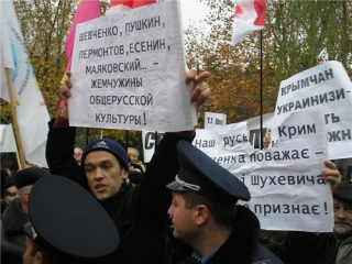 Только-только улеглась волна протестов, связанная с заявлением севастопольского чиновника о том, что украинский язык в городских школах останется обязательным [1], как вскрылся новый "нарыв". В Севастопольской гимназии N5 имени Леси Украинки с русским и украинским языками обучения с молчаливого одобрения школьного руководства и прежнего руководства управления образования на стенах учебного заведения стала появляться свастика и антироссийские лозунги. А некоторые ученики даже стали требовать от администрации запрета на празднование Дня Победы и исполнение гимна России в день последнего звонка. И что самое интересное, вопреки протестам подавляющего большинства, им пошли навстречу [2]! В подобном же ключе развиваются события и в Ялте. На днях по многим центральным каналам Украины "прогремел" видеоролик, на котором выпускники Ялтинской украинской гимназии во время исполнения гимна России на последнем звонке решили спеть украинский гимн [3], выказав тем самым неуважение и к гимну России, и к государству, в котором они проживают! То, что это видео охотно тиражируется центральными украинскими СМИ, может свидетельствовать только об одном - о заказном характере данной провокации, а также о том, что в Крыму есть те, кто с удовольствием готов её исполнить. Кроме того, важно ответить и на вопрос, почему в качестве места такой провокации было выбрано именно это учебное заведение. Хотя, если вспомнить одно обстоятельство, то можно будет легко ответить и на него. Ну например, что учителя этой гимназии частенько принимали участие в праздновании украинских националистических праздников вместе с местной "Просвiтой" и активистами ВО "Свобода". Недаром именно это заведение во время своего визита в Крым в качестве "первой леди" выбрала для посещения Екатерина Чумаченко-Ющенко (бывший сотрудник госдепа США, член секты "рунвистов" и ряда ультранационалистических украинских организаций) [4]. Тогда ялтинские антифашисты вышли на акцию протеста под стены украинской гимназии и попытались воспрепятствовать проезду машины с VIP-персоной, однако охране удалось оттеснить митингующих.