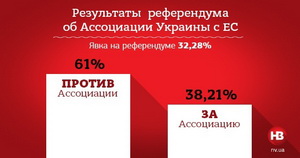 Напомним, 12 апреля обнародовали официальные результаты референдума в Нидерландах, согласно которым явка составила 32,28%, против проголосовало 61%, за – 38,21%.