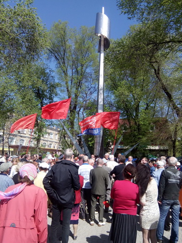 На площади Конституции собралось несколько сотен людей, не смотря на угрозы со стороны все тех же «активистов». Пришли и они, но в относительно небольшом количестве – порядка 10 человек. Вели себя крайне провокационно и агрессивно, мешая проведению митинга, однако спровоцировать потасовку побоялись. В данном случае преимущество в силе было не на их стороне. После краткого митинга на площади Конституции участники акции провели шествие к знаку первой маевки и возложили цветы.