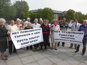 После митинга прогрессисты организовали флеш моб. Все желающие присоединялись и пели вместе наши любимые песни: ..Рябинушка..Моя любимая..Огонек..Я люблю тебя жизнь.. Алеша ... и другие.