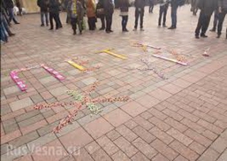 "Петя жуй". Митингующие выложили послание Порошенко конфетами Roshen