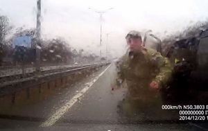 Пьяные бойцы батальона Айдар устроили драку с водителем на трассе Борисполь-Киев. Соответствующее видео обнародовал в YouTube пользователь Alex Momot.