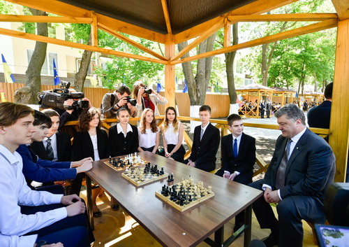 В них указывается, что 26 мая Порошенко посетил новый спорткомплекс на территории одесского лагеря, осмотрел корпуса, прилегающую территорию и пообщался со школьниками.