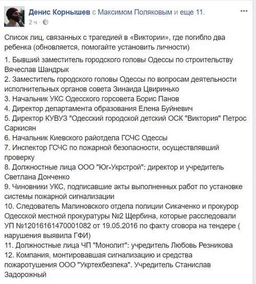 Правоохранители и высокие чины обещают, что все виновные понесут наказание. Местные журналисты, в свою очередь, уже составляют список тех лиц, которые по их мнению, имеют отношение к трагедии. В настоящее время он включает в себя 12 персоналий.