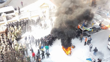 Под Администрацией Порошенко подожгли шины, начались столкновения
