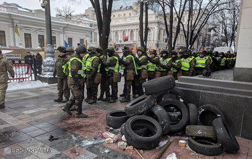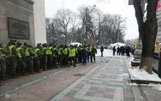 В палаточном городке, установленном возле здания Верховной рады Украины сегодня утром, 27 февраля 2018 года, произошли столкновения, передает корреспондент РБК-Украина.