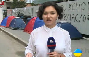 Напомним, возле офиса телеканала "Интер" на ул. Дмитриевской митингующие разбили палатки и намерены там ночевать. Они заявили, что их акция бессрочная. Также под здание принесли шины.