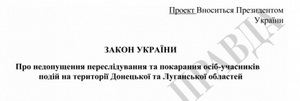Согласно закону, государство гарантирует "недопущение уголовного преследования, привлечение к криминальной, административной ответственности и наказания лиц - участников событий на территории Донецкой, Луганской областей", кроме того "запрещается дискриминация, преследование и привлечение к ответственности лиц по поводу событий, которые имели место в Донецкой, Луганской областях".