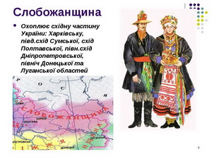 Слобожанщина - историко-географический регион, на территории нынешней северо-восточной части Украины и юго-востока Черноземья. Занимала территорию нынешних Харьковской, Сумской, север Донецкой и Луганской областей Украины, а также юго-восточную часть Воронежской, юг Курской и большую часть Белгородской областей России.