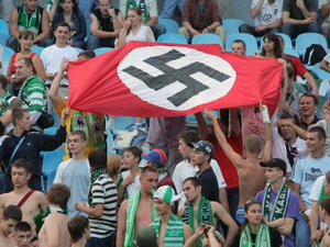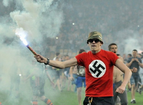 В своей блоге на "Украинской правде" Алексей Братущак, журналист принадлежащего президенту Порошенко "5 канала", пишет, что украинские футбольные из числа неонацистов позорят Украину.