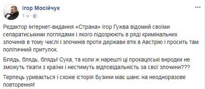 После отъезда главреда "Страны" в Австрию радикал Мосийчук призвал к убийствам