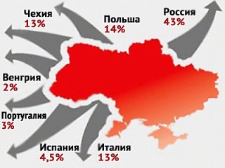 Например, если в 2007–2008 гг. в Польшу ехали 8% украинских гастарбайтеров, то в 2010–2012 гг. - 14%. Доля мигрирующих в Испанию увеличилась с 2,7% до 4,5%, в Чехию - с 12% до 13%. В РФ едут 43% украинских работников.