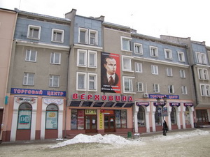 (если кто не в курсе, на втором баннере изображен Роман Шухевич - гауптман вермахта во время войны и руководитель ОУН и УПА после войны)