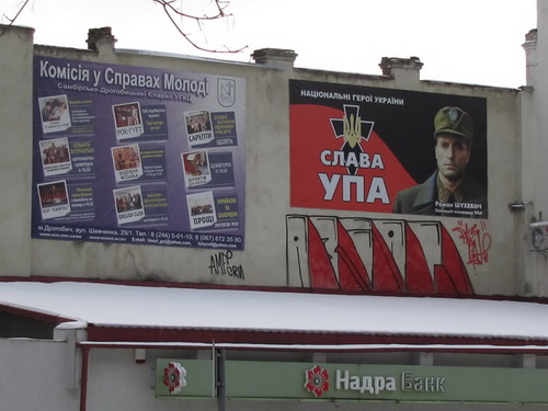 Напоследок приведу еще пару образцов наглядной агитации в Дрогобыче – прославление главных национальных героев Украины на плакатах в центре города: