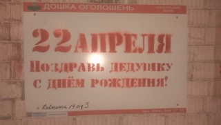 "Пока что никто не запрещал просто молча прийти в центр Киева, куда-то на Бессарабскую площадь, и положить букетик цветов с поздравительной открыткой к тому месту, где когда-то стоял монумент", - пишет автор Дина Артеменко За последние несколько лет мы уже как-то привыкли не только к разного рода политической агитации размещенной на билбордах, а и к украшенным цветами фотографиям чьих-то близких, которых на этих же билбордах поздравляют с днями рождения, юбилеями, годовщинами. Мы видим, как билборд сегодня - это отличная площадка и для политической, и для личной коммуникации. На досках объявлений, стенах домов, заборах Киева и Запорожья сегодня утром можно было увидеть второпях написанные краской призывы прийти и "поздравить дедушку с Днем рождения". И дата: 22 апреля. Все мы понимаем, о каком "дедушке" идет речь, о том, чей мягкий и одновременно строгий, лукаво прищуренный взгляд на протяжении почти ста лет, по-отечески смотрел на людей.