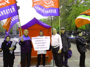 14.10.2013 г. Луганская городская организация ПСПУ провела акцию против реабилитации военных преступников из ОУН-УПА.