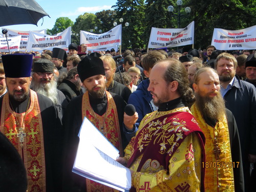 Безусловно, прихожане УПЦ МП не могли не высказать свой протест таким деяниям и вышли на мирную акцию к стенам Верховной Рады Украины, где провели свой молебен.