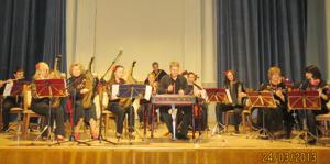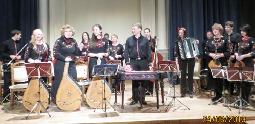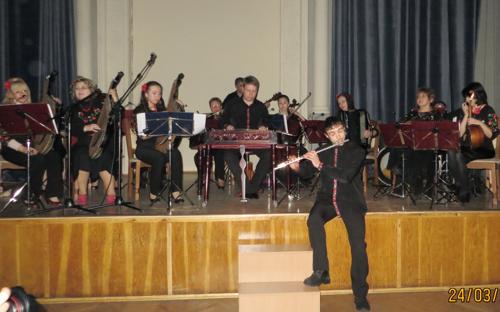 И не пожалели! Великолепный молодой коллектив, созданный в октябре 2010-го года на базе Киевской школы искусств N6 им.Г.Жуковского, состоит целиком из педагогов школы. Богатство музыки создают самые разнообразные инструменты – 3 бандуры. 3 скрипки, 2 домры, виолончель, флейта, кларнет, баян, контрабас, гитара и цимбалы. Виртуоз – цимбалист одновременно и руководитель оркестра Виктор Дмитренко. Его мастерство просто потрясает! После исполнения его авторской импровизации во втором отделении концерта зал взорвался овациями.