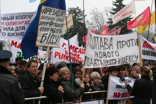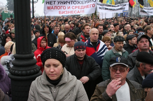 Предприниматели на акции протеста у стен Верховной Рады Украины, осудили деятельность лидера партии "Сильная Украина", вице-примьер-министра по вопросам экономики С.Тигипко.
