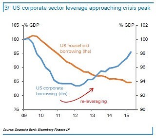 Что утверждает автор: политика центральных банков соблазняла корпорации занимать тонны денег, которые они промотали на обратные выкупы акций и дивиденды; ничто из этого не создает поток прибыли, необходимый для погашения долгов. Итак, вместо того, чтобы подготавливать компании к будущему (а бизнес-инвестиции находятся на историческом минимуме), корпорации ведут себя так, как банки Уолл-Стрита действовали перед крахом ’08. Они занимают триллионы у инвесторов - мам и пап - с помощью рынка облигаций, подталкивая цену своих акций вверх путём обратного выкупа, увеличивая бонусы исполнительным директорам и выводя деньги на счета в офшорах. Теперь должен прийти счёт на оплату, а у них нет денег на выплату долга или возможности получения прибыли, чтобы избежать дефолта. Что-то будет.